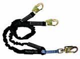 Reduces forces by as much as 50%-80%. Rugged 6' lanyards feature a special shock absorbing inner core surrounded by a super-strong outer jacket. When a fall occurs, the outer jacket extends full length and acts as a backup web lanyard, while the inner core extends to reduce force. Unique warning flag pops out to indicate when lanyard has been involved in a fall and should be removed from service. Available in single or dual leg.