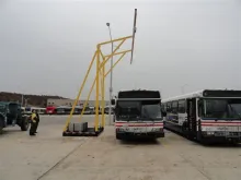 C-Frame Rail Fall Arrest System (FAS) is a versatile solution for working at heights. It's designed to be moved manually or with use of a tow bar and service vehicle. The C-Frame Rail FAS will require some clearance under the equipment being accessed, to accommodate for outrigger supporting legs.