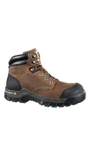 Carhartt Men's Rugged Flex Waterproof Composite Toe 6". Up, down. Over, under. The job keeps you on the move. These men's rugged 6-inch boots are built to move and keep your feet dry in a range of conditions. A flexible rubber outsole provides confident grip for ladder rungs, cement floors and uneven terrain, and resilient cushioning maintains all-day comfort. Composite reinforcements at the toe and heel add impact resistance. Features: Durable rugged leather upper
