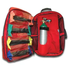 Our FTX backpack is like having an E.R. at your fingertips. To facilitate a rapid response we designed one outer pocket to hold your AED and one smaller pocket above for extra AED pads and accessories. Mid-Section of case unzips to reveal a full-length compartment for collars, splints or other flat items. Interior of case has dedicated hold-downs for a 'D' size oxygen tank. A bag- valve-mask, airways, nasal cannulas and oxygen masks.