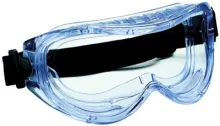 1" wide elastic strap with adjustable buckle attaches to frame with a swivel clip for comfortable fit. Designed to fit over most prescription spectacles. Indirect venting for liquid splash protection. Nose area split to adapt to most nose shapes. Wraparound style with distortion free panoramic view lens