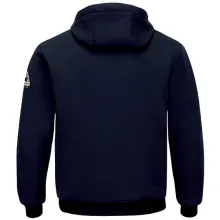 Hood with drawstring closure, Zipper front, Rib knit cuff and waistband, Fully lined with waffle lining, Hand-warmer unlined pockets. Outer Fabric: Flame-resistant, 12.5 oz. (425 g/m²) 95% Cotton/5% Spandex Brushed Fleece. Waffle Lining: Flame-resistant, 7.6 oz. (260 g/m²) 100% Cotton Waffle Texture Knit. Arc Rating EBT 54 calories/cm².