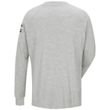 Crew neck› Rib knit collar and cuffs› Single spade chest pocket› Lightweight. Flame-resistant, 5.0 oz. 70% Modacrylic / 30% Rayon-Tencel. Arc Rating EBT 4.8 calories/cm². Home Wash.