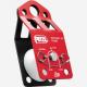Knot-passing pulley. Voluminous rope channel allows the passage of joining knots (lifting loads over great distances or moving along a Tyrolean traverse with two ropes).